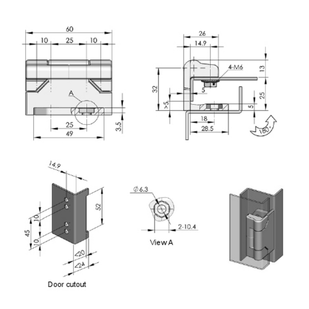 The CL213-3 concealed hinge is engineered for applications that demand both strength and versatility. Constructed with a zinc alloy body and PA pivot, this hinge allows for a 180-degree opening, ensuring wide access for various industrial enclosures and equipment panels. Its robust design provides reliable performance, making it ideal for heavy-duty use.