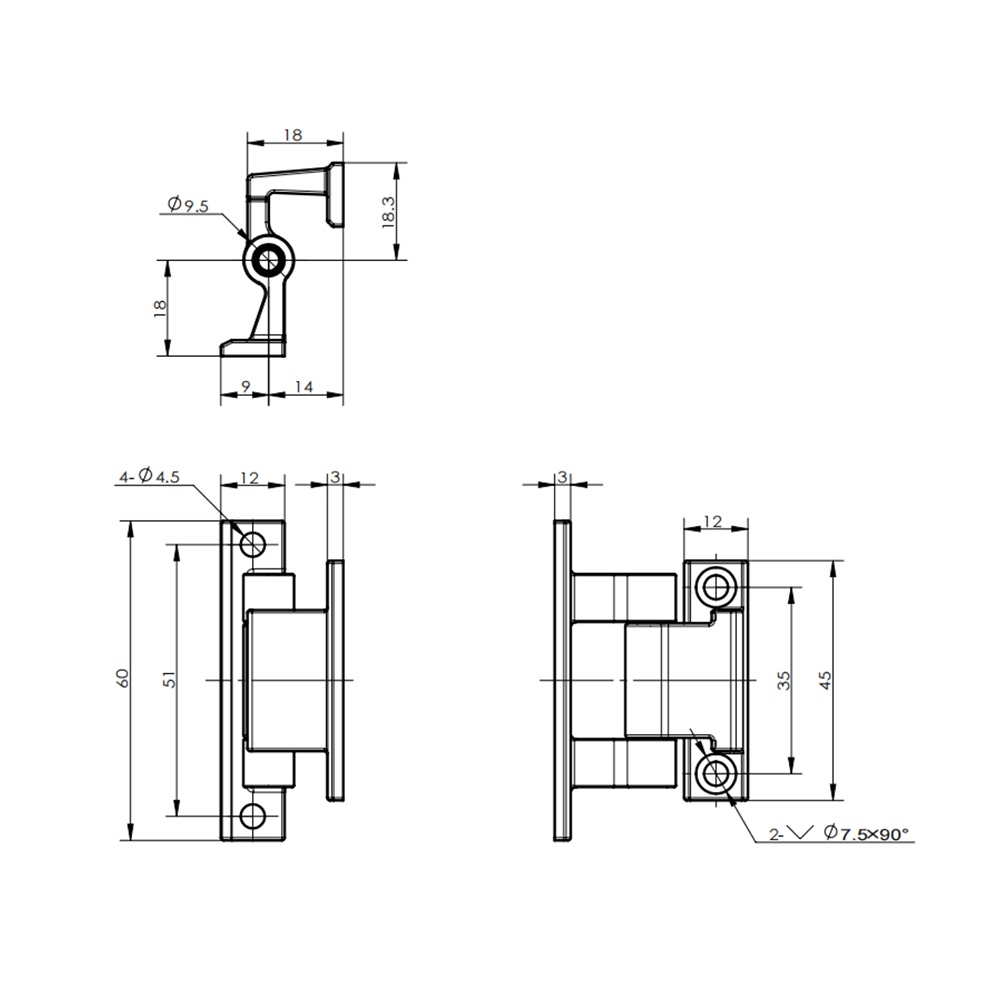 • Material: Zinc alloy hinge body, stainless-steel shaft.