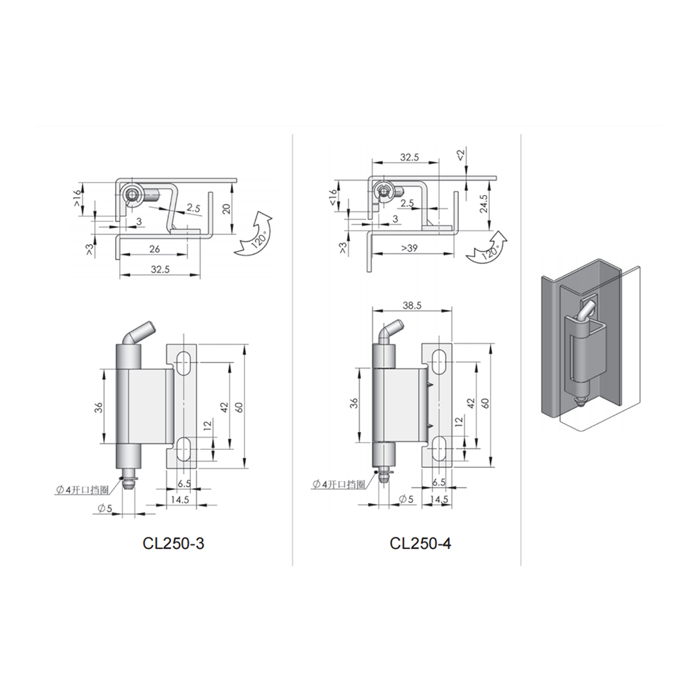 CL250, Concealed Hinge, Industrial Hinge, Cabinet Hinge, Enclosure Hinge, Heavy-Duty Hinge, CL250-1, CL250-2, CL250-3, CL250-4, CL250-6